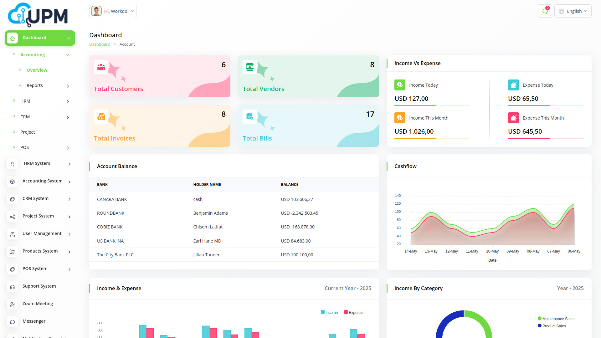 Satın alERP.UPM.AZ, biznesinizin bütün əsas proseslərini – layihə idarəetməsi, mühasibatlıq, insan resursları (HRM), müştəri əlaqələrinin idarə olunması (CRM) və satış nöqtəsi (POS) funksiyalarını bir sistemdə birləşdirir. İstifadəsi asan panel və funksional imkanlar sayəsində iş axınınızı avtomatlaşdırın, zamanınıza və resurslarınıza qənaət edin.
